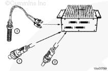康明斯進氣歧管壓力傳感器(1)和進氣歧管空氣溫度傳感器(2)位于進氣歧管內。進氣歧管壓力傳感器監控用于空燃比控制功能的正向歧管壓力。進氣歧管溫度傳感器測量渦輪增壓空氣溫度。進氣歧管空氣溫度傳感器也可用于發動機保護系統。