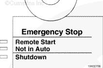遠(yuǎn)程起動或停機按鈕用于從遠(yuǎn)程位置的發(fā)電機組起動和停機。當(dāng)發(fā)電機組工作時,此按鈕顯示為停機 (STOP);當(dāng)發(fā)電機組沒有工作時,此按鈕顯示為起動 (START)。