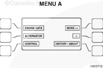 顯示菜單有 6 個快速按鈕 - 圖形顯示窗的兩邊各有三個 - 用于系統(tǒng)控制菜單導(dǎo)航和調(diào)整發(fā)電機組參數(shù)。