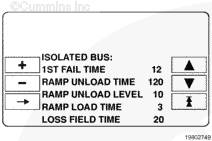 減速卸載水平:負(fù)載要求減速卸載功能將使負(fù)載在斷開電路斷路器前從發(fā)電機組現(xiàn)在的水平逐漸降低至此水平。顯示的數(shù)值是發(fā)電機組備載功率的百分比。