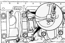 安裝連桿時,連桿(右排和左排)上壓印的缸號必須朝向左排凸輪軸。如果連桿安裝得不正確,可能導(dǎo)致發(fā)動機損壞。