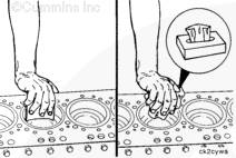 用雙手取出活塞和連桿總成。如果繼續(xù)使用這些零件,則活塞和連桿總成必須安裝在與拆卸時缸號相同的氣缸中,保持已磨損的配合面正確配合。使用標(biāo)簽在每個活塞和連桿總成上標(biāo)記出相應(yīng)缸號。