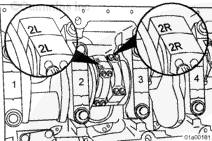 左排和右排的兩個氣缸可以在安裝并緊固活塞時,不盤動發(fā)動機(例如 1R 號、1L 號、6R 號和 6L號)。完成后,盤動發(fā)動機使 3 號、4 號、2 號和 5 號軸頸位于下止點。安裝活塞。