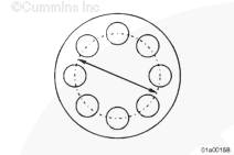 QST30 發(fā)動(dòng)機(jī)曲軸前端的螺栓孔采用滾絲螺栓。清潔滾絲螺紋時(shí),請(qǐng)用溶劑沖洗。用壓縮空氣吹干螺紋。如果還需要附加清潔,用尼龍毛刷進(jìn)行洗刷。