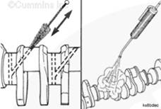 注: 新曲軸涂覆有厚厚的防護(hù)油。使用溶劑徹底去除涂層。在發(fā)動(dòng)機(jī)上安裝曲軸之前,先刷出或沖出機(jī)油油道中的包裝碎屑。