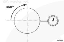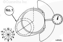 4. 時(shí)鐘位置:時(shí)鐘位置是指軸頸最高千分表總讀數(shù)的位置。即從曲軸前端觀察時(shí),比較其與 1 號(hào)曲軸銷的角度關(guān)系。在示例中,曲軸銷處在 8 點(diǎn)鐘位置。這就是被測(cè)軸頸的時(shí)鐘位置。