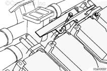 使用一部吊車、兩個 10-mm T 形手柄和一根吊索。連接 T 形手柄、吊索和吊車。升起吊車直至吊索張緊。拆下其余的螺栓和中冷器總成。拆卸并廢棄密封墊。