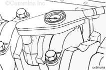 斷開蓄電池。參考原始設備制造商 (OEM) 維修手冊。排放機油。參考第 7 節中的步驟 007-037。拆下油底殼和密封墊。參考第 7 節中的步驟 007-025。排放冷卻液。參考第 8 節中的步驟 008-018。拆下部件蓋。參考 第 3 節中的步驟 003-030。拆下缸蓋。參考第 2 節中的步驟 002-004。