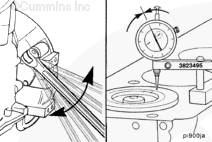 旋轉曲軸至上止點。順時針和逆時針轉動曲軸,查找千分表最大讀數。記錄測量結果。