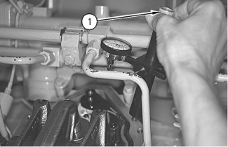 Install the 145-5191 Gauge Support in the rear bolt hole (2). The rear bolt hole is located in the valve cover base. Adjust contact point (3) on the top edge of valve bridge (4) .