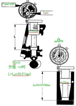 ② 把測(cè)量桿放入油泵安裝孔中,當(dāng)凸輪在基圓上時(shí)讀出千分尺的刻度x+ymm,x+y即缸體中安裝平面到挺柱的高度與標(biāo)準(zhǔn)高度Le之差。