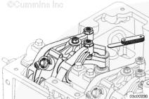 如果康明斯ISX15 CM2250發動機工作間隙不符合技術規范,松開搖臂軸螺栓但不要卸下,按所需的方向旋轉軸使工作間隙處于所列技術規范內。在所有 6 個制動器搖臂上設定此間隙并進行確認,這一步至關重要。如果沒有完成這一步則會損壞發動機。