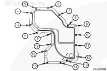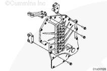使用康明斯ISX15 CM2250發動機提升設備將齒輪室蓋安裝到下部三個雙頭螺柱上。