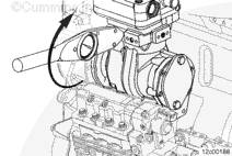 將康明斯ISX15 CM2250發(fā)動(dòng)機(jī)空氣壓縮機(jī)、密封墊、安裝螺母和螺釘安裝到前齒輪室上。