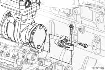 將康明斯ISX15 CM2250發(fā)動(dòng)機(jī)空氣壓縮機(jī)安裝托架和四條螺釘裝到空氣壓縮機(jī)下面的缸體上。開始擰緊全部四條螺釘。