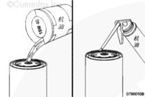 用清潔的 15W-40 機(jī)油加注濾清器。
