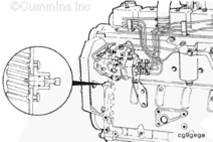 注: 正時(shí)銷用于精確定位上止點(diǎn)以設(shè)置頂置機(jī)構(gòu)。通常正時(shí)銷位于燃油泵下方。對(duì)于康明斯前齒輪系發(fā)動(dòng)機(jī),位于前齒輪室內(nèi)(如圖所示)