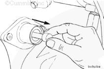 在壓下康明斯發(fā)動(dòng)機(jī)正時(shí)銷的同時(shí)緩慢盤動(dòng)曲軸,以定位 1 號(hào)氣缸的上止點(diǎn) (TDC)。建議從發(fā)動(dòng)機(jī)后部的飛輪上盤動(dòng)發(fā)動(dòng)機(jī)。