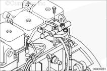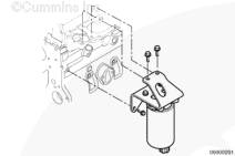 在康明斯發(fā)動機(jī)上安裝燃油濾清器座支架。在缸蓋上用手?jǐn)Q緊兩個 M10 螺栓,在缸體中用手?jǐn)Q緊剩余 M8 螺栓。