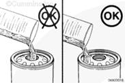 向新康明斯發(fā)動機(jī)濾清器中加入清潔的柴油。
