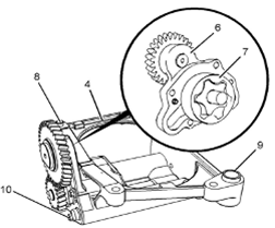 5在外轉子(7)上做些臨時標記。從Perkins1106A/C發(fā)動機機油泵(4)的Perkins1106A/C發(fā)動機機殼體上卸下外轉子(7)。