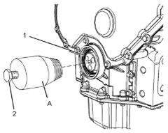 2.將螺栓(2)擰入工具(A)以拆卸Perkins1106A/C發(fā)動機曲軸前油封(1)。