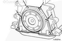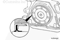 曲軸后油封安裝在殼體上,該殼體通過螺栓安裝在缸體后部。使用雙層 Teflon™ 密封件。曲軸密封面必須清潔并且在安裝油封時沒有機(jī)油。