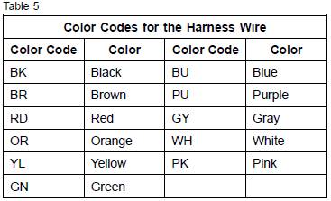 注:經常更換線束電線的規格和相同的顏色代碼。