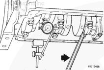拆卸易接近的檢修孔蓋。 穿過檢修孔蓋開口在曲柄板上使用撬棍可以前后移動曲軸。通過曲軸配重或前減振器上的檢修孔蓋開口可以測量軸向間隙。