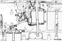 拆下康明斯起動馬達電纜、發動機接地導線、從駕駛室或底盤接到發動機的軟管、管道、電氣導線、接線線束和液壓管。