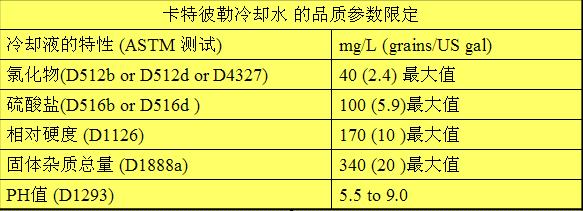 2、卡特彼勒柴油發動機冷卻液(壽命3000小時,250小時一次保養)水+防凍液+冷卻液增補添加劑(3~6%)