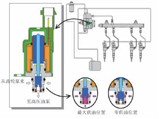 此外,燃油還在針閥和控制柱塞處產(chǎn)生泄漏,控制和泄漏的燃油量,經(jīng)連接回油管,會同高壓泵和壓力控制閥的回油流回油箱。